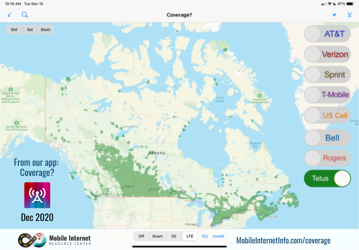 - Cellular maps for the Canadian carriers - Bell, Telus and Rogers
