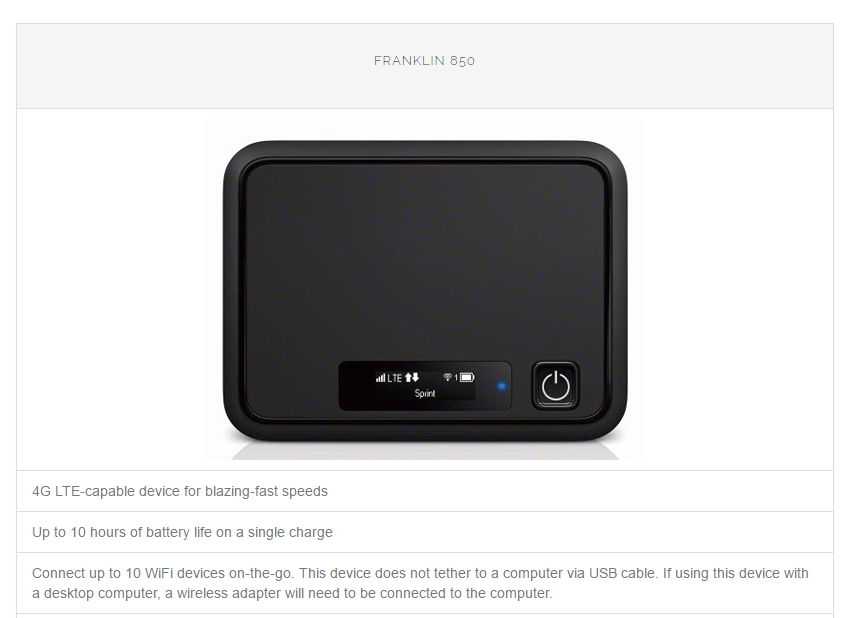 Those who are not Minnesota residents are offered the Franklin 850 for $74.95 through PCs for People's website. Minnesota residents who are willing to visit an office are offered the Netgear Fuse hotspot for $60.
